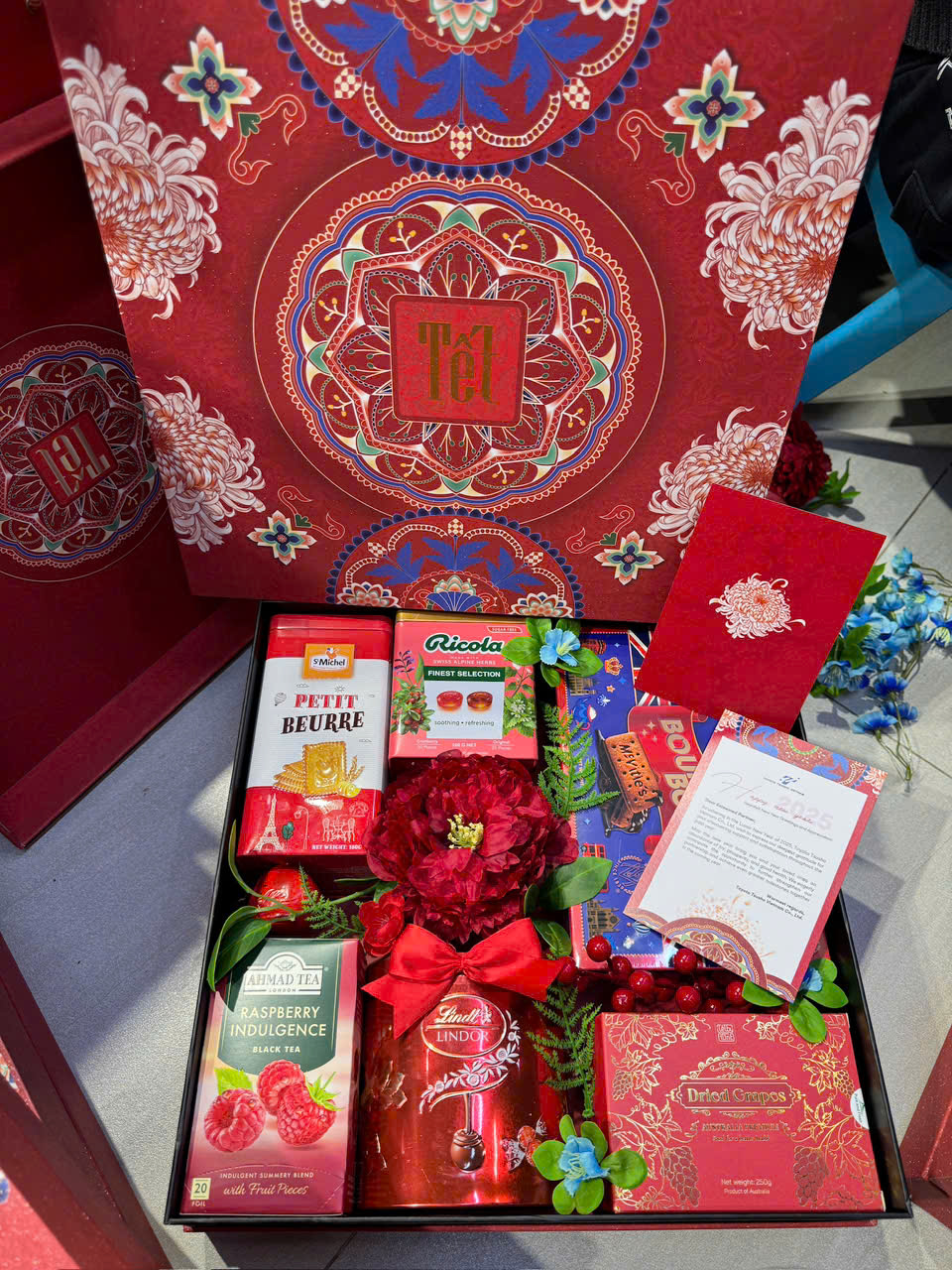 Thiết kế hộp quà mang phong cách tối giản đặc trưng của Nhật Bản, nhưng họa tiết hoa văn Tết Việt lại được cách điệu một cách tinh tế trên nền giấy Washi cao cấp. Mỗi sản phẩm bên trong, từ trà xanh Genmaicha đến các loại mứt thủ công Việt Nam, đều được lựa chọn và sắp đặt theo một câu chuyện về sự giao thoa văn hóa. Toàn bộ quy trình sản xuất được giám sát nghiêm ngặt, đáp ứng hoàn hảo các tiêu chuẩn chất lượng mà chúng tôi đề ra.